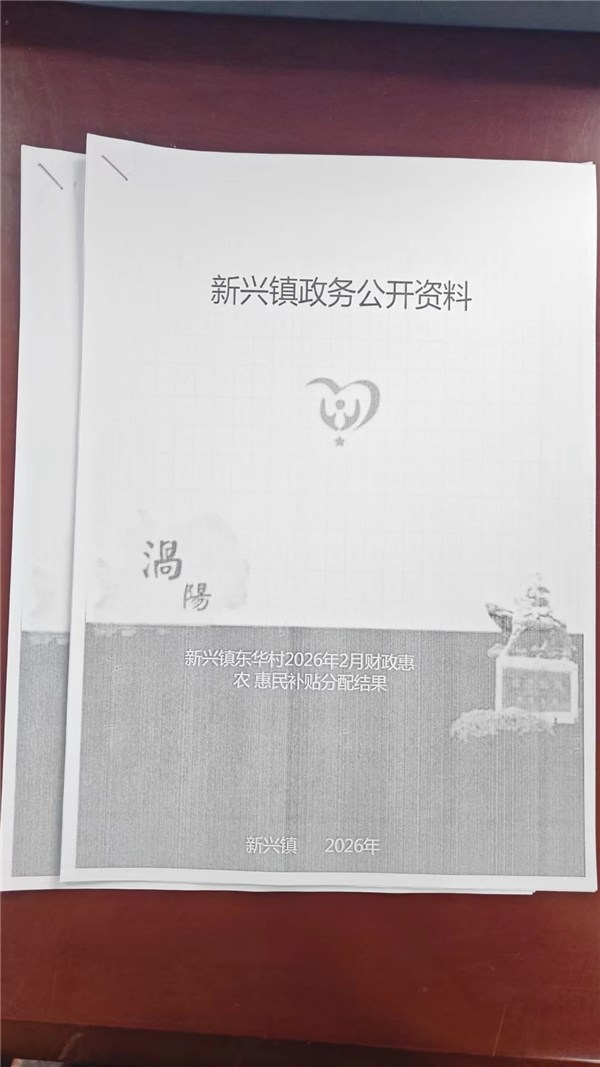 | 名称: | 新兴镇东华村2026年1-2月份财政惠民惠农补贴公示、资料留存 | 文号: | 无 |