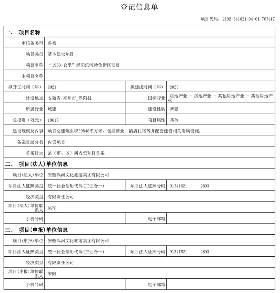 | 名称: | 涡阳县发改委关于“1953-仓里”涡阳滨河特色街区建设项目备案登记 |