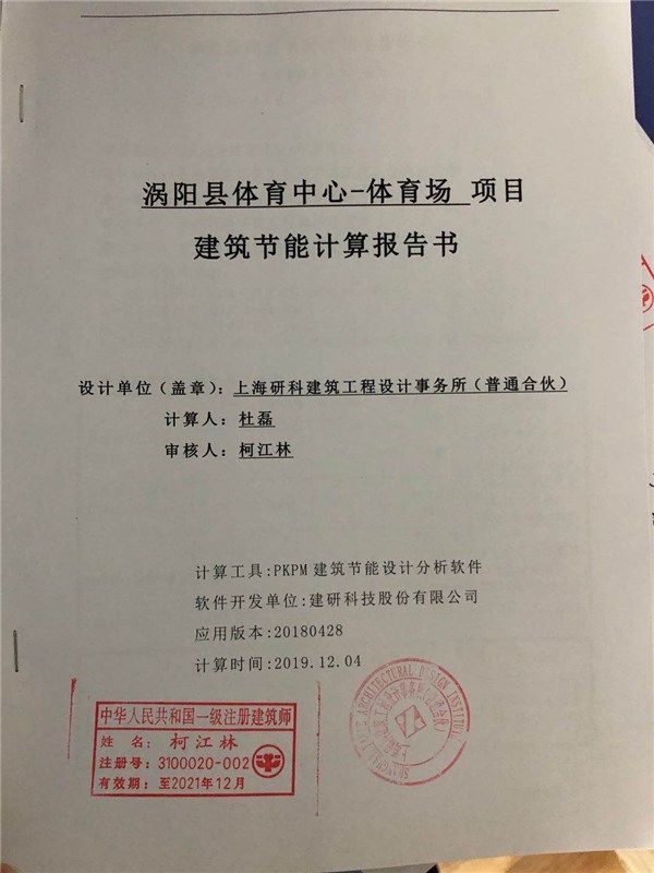 | 名称: | 涡阳县体育中心-体育场项目建筑节能计算报告书 | 文号: | 无 |