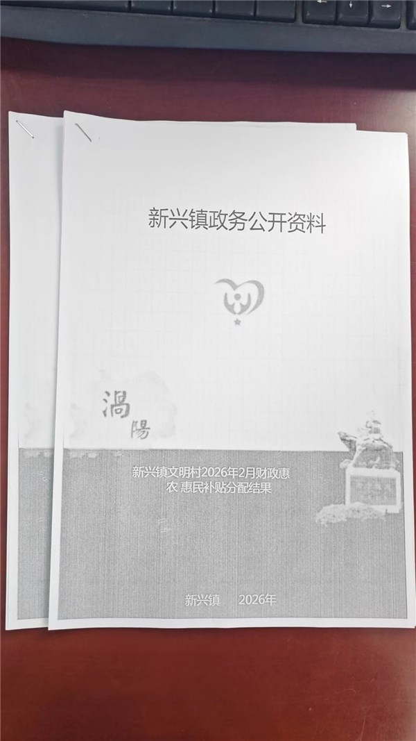 | 名称: | 新兴镇文明村2026年1-2月份财政惠民惠农补贴公示、资料留存 | 文号: | 无 |