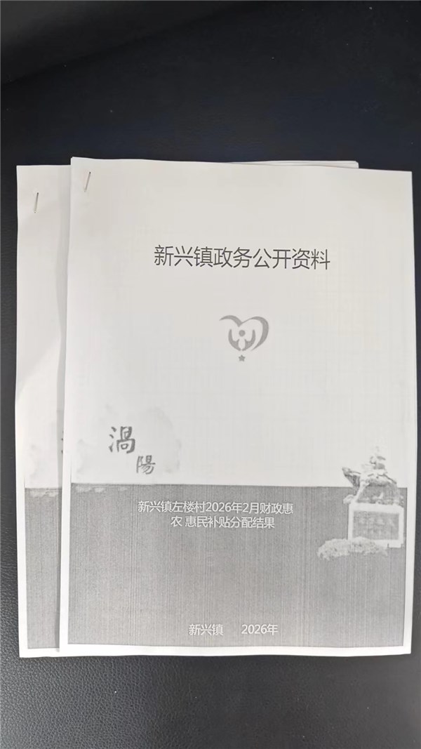 | 名称: | 新兴镇左楼村2026年1-2月份财政惠民惠农补贴公示、资料留存 |
