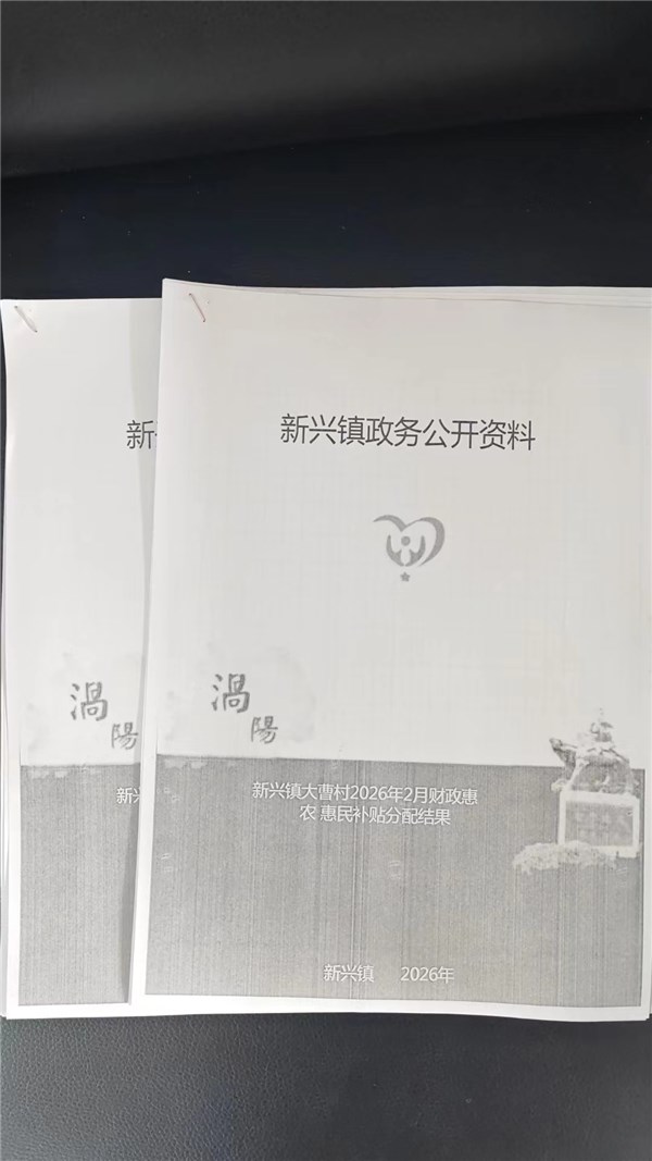 | 名称: | 新兴镇大曹村2026年1-2月份财政惠民惠农补贴公示、资料留存 |