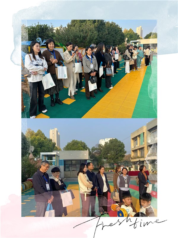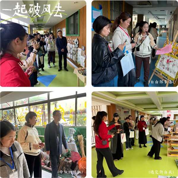在乐行幼儿园老师的陪同下,参访者走遍了班级、户外等各个角落,零距离感受课程游戏化建设下的园所环境。老师们被一个个鲜活有温度的故事、孩子们奇思妙想的创意视角、大胆的游戏表征、丰富的区角材料、师幼共创的主题课程深深吸引,富有教育内涵的环创吸引着老师们驻足、欣赏与记录。