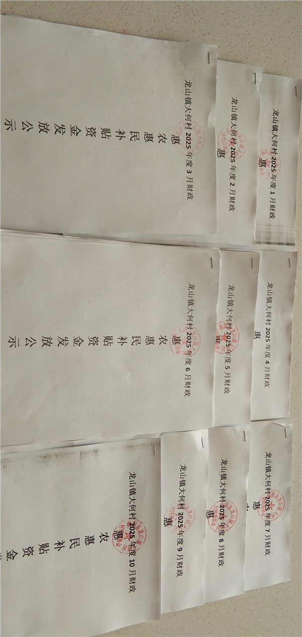 | 名称: | 龙山镇大何村2025年1-10月份惠民惠农补贴公示资料留存 |