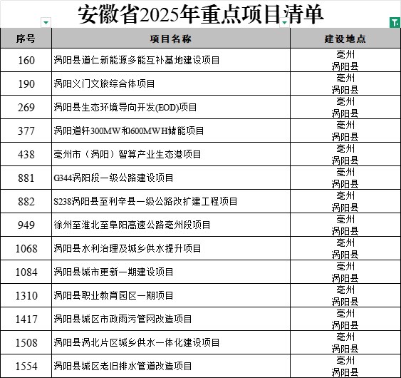 | 名称: | 涡阳14个!安徽省2025年重点项目清单公布 |
