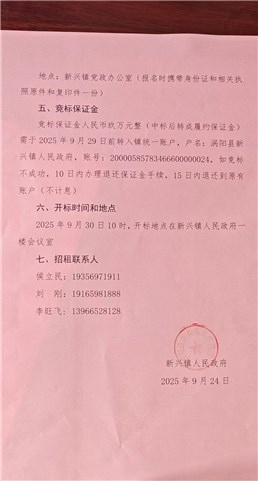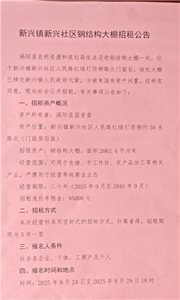 | 名称: | 新兴镇新兴社区钢结构大棚招租公告 |