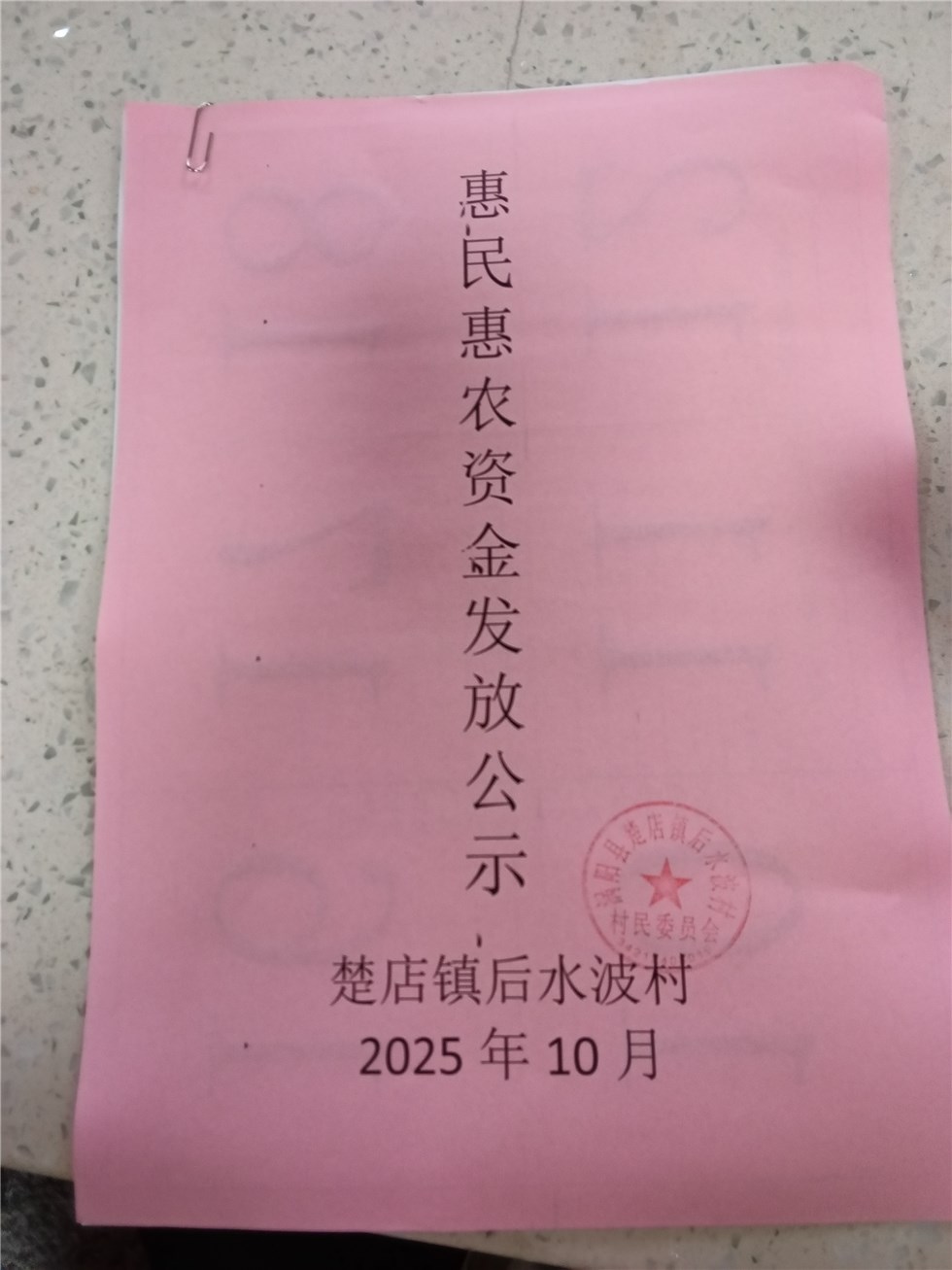 | 名称: | 涡阳县楚店镇后水波村2025年10月份财政惠民惠农补贴公示、资料留存 |