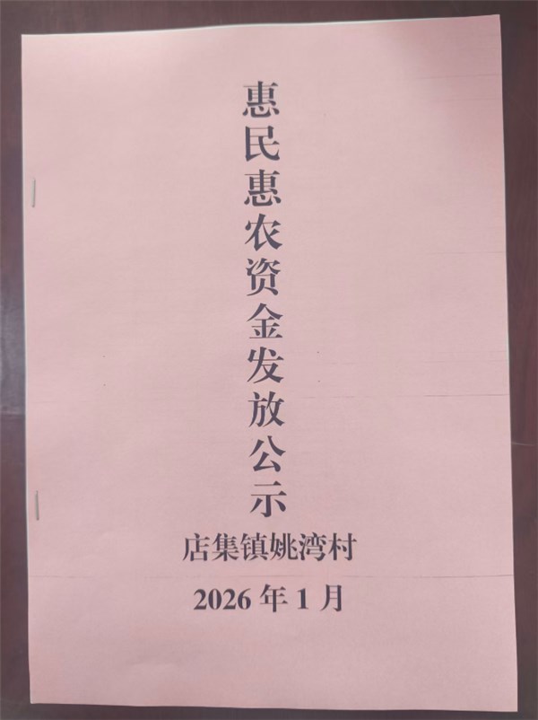 | 名称: | 涡阳县店集镇姚湾村2026年1月份财政惠民惠农补贴公示及资料留存 | 文号: | 无 |