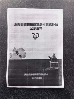 | 名称: | 青疃镇蒋瓦房村2026年1月份涉农补贴公示和资料留存情况 | 文号: | 无 |
