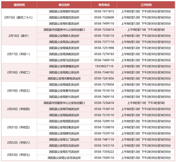 | 名称: | 涡阳县公安局2026年春节假期窗口值班表 |