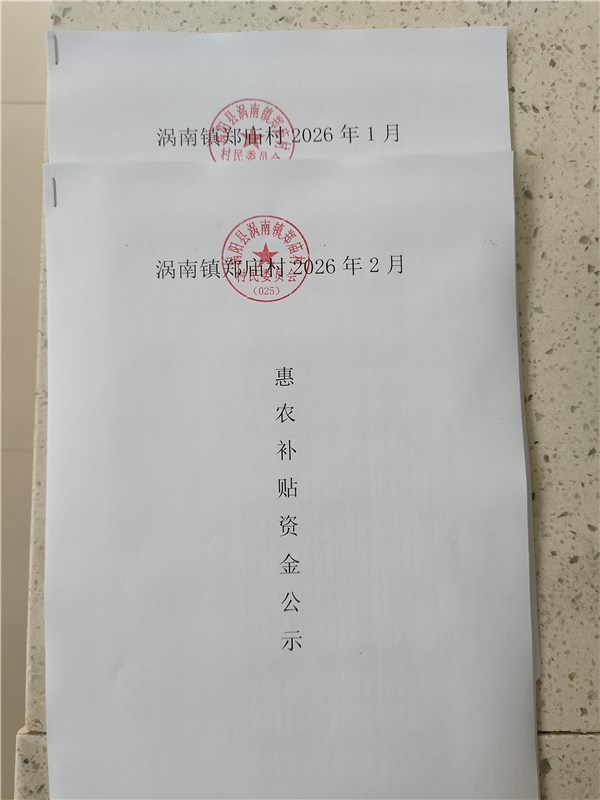 | 名称: | 涡南镇郑庙村2026年2月惠民补贴公示 |